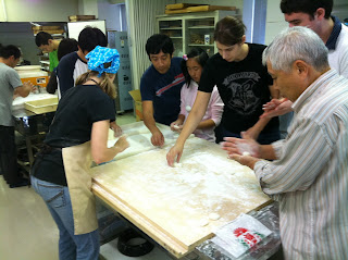 Once ready, the dough was removed and split into pieces so each table could work with some. The dough is pretty hot and would burn your fingers, but you have to work fast, as once it cools, it hardens.